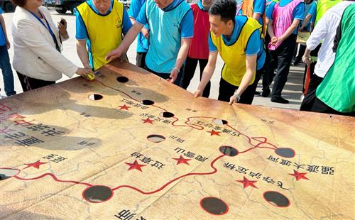 重走長征路項目,隊員們團結一致,相互配合,巧渡金沙江、強渡大渡河、飛奪瀘定橋、爬雪山、過草地、最終勝利大會師,讓在場的每一位小伙伴都重“走”了一遍長征路,讓我們大家同心共筑了中國夢!